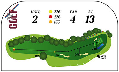 Hole 2 en hole 11 zijn met hun ruim 270 meter de langsten van de baan. Met rechts de hockey velden van Hockey club PW en links een prachtige rij oude eiken, die met hun lange takken een eind de baan in steken een uitdaging voor menig speler. Aan de "veilige" rechter zijde van de fairway zijn 2 bunkers gesitueerd, die veel langere 1e afslagen opvangen. Een kleine greeside bunker links en een vijver rechts bewaken de green.