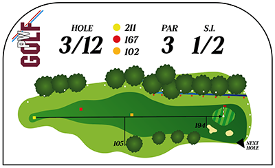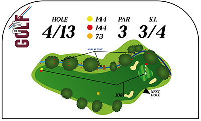 Na het oversteken van een openbaar toegankelijk voetpad komt u biij hole 3/12. De linkerzijde wordt bewaakt door een sloot met aan de buitenzijde daarvan de out-of-bounds grens. Aan de rechterzijde een aantal oude beuken die deze hole scheiden van hole 4/13. Zeker als deze vol in het blad zitten maken ze het u moeilijk. Naast de green zijn 2 kleine bunkers.