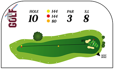Hole 1 en Hole 10 voeren u van het clubhuis weg langs een fiets- en voetpad links. Dit fiets- en voetpad is weliswaar van de baan gescheiden door een hek maar het afslaan terwijl er zich nog fietsers en/of voetgangers daar bevinden is ten strengste verboden. De green wordt bewaakt door 2 greenside bunkers die menig speler hoofdbrekens bezorgen.