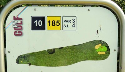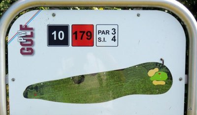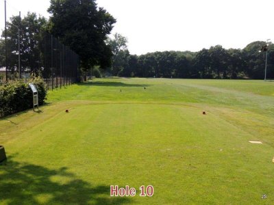 Hole 1 en Hole 10 voeren u van het clubhuis weg langs een fiets- en voetpad links. Dit fiets- en voetpad is weliswaar van de baan gescheiden door een hek maar het afslaan terwijl er zich nog fietsers en/of voetgangers daar bevinden is ten strengste verboden. De green wordt bewaakt door 2 greenside bunkers die menig speler hoofdbrekens bezorgen.